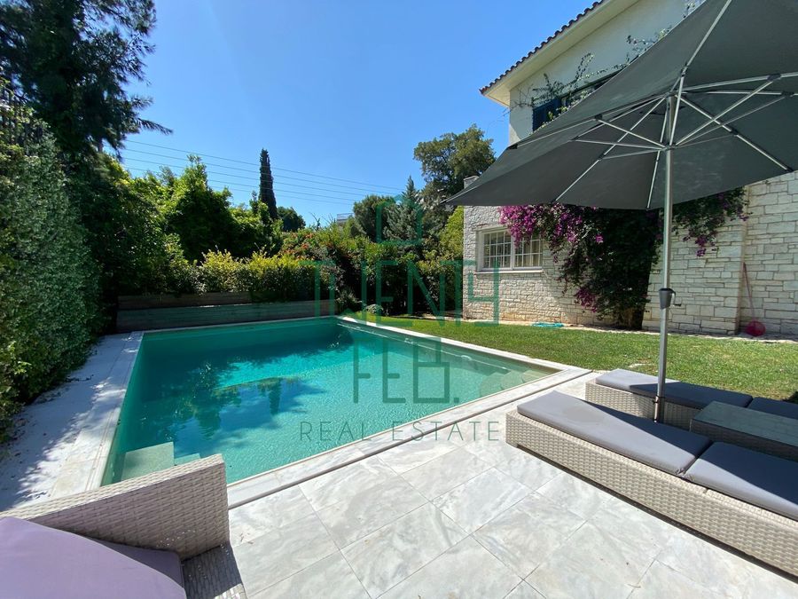 Ενοικιάζεται μονοκατοικία στο Παλαιό Ψυχικό, 420 τ.μ. σε οικόπεδο 1.130 τ.μ., με πισίνα και μεγάλο καταπράσινο κήπο, σε μία από τις καλύτερες τοποθεσίες της περιοχής. Η κατοικία αναπτύσσεται σε δύο επίπεδα και προσφέρει άνεση, πολυτέλεια και λειτουργικούς χώρους ιδανικούς για οικογένεια.Στο υπερυψωμένο ισόγειο βρίσκεται ο κύριος χώρος υποδοχής με δρύινα πατώματα και τζάκι, δύο καθιστικά, τραπεζαρία και γραφείο, καθώς και wc επισκεπτών. Η κουζίνα είναι ανεξάρτητη, πλήρως εξοπλισμένη με χώρο καθημερινού φαγητού και άμεση πρόσβαση σε αίθριο, ενώ ξεχωρίζει η σουίτα φιλοξενίας με υπνοδωμάτιο, καθιστικό, kitchenette, μπάνιο και ανεξάρτητη είσοδο.